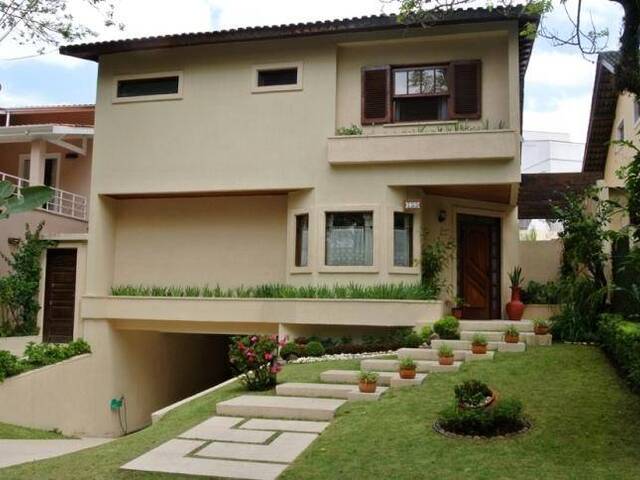 Piso superior = quatro suítes, amplas, (a master c/ closet + jardim interno + banheiro c/ box-chuveiro + banheira c/ hidro, as outras suites c/ varanda) + sala íntima.