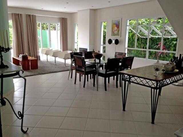 'Casa de 300 m² de área construída, com 4 dormitórios (sendo 2 suítes), living para 2 ambientes, sala íntima, repleta de armários, 2 vagas de garagem coberta, área de lazer com piscina e churrasqueira.