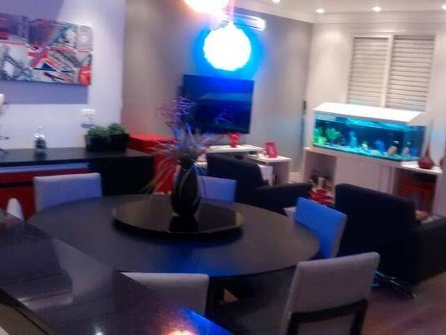 SALA AMPLIADA COM COZINHA AMERICANA, VARANDA GOURMET COMPLETA E AR CONDICIONADO NA SUITE E NA SALA'