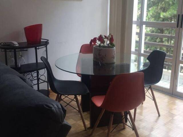 'Lindo apartamento de 50 m², mobiliado com geladeira, fogão, cooktop, micro-ondas, mesa e cadeiras, sofá, televisão, cama box, closet - decorado.