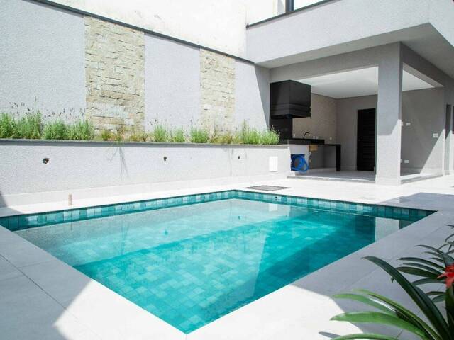 PAVIMENTO TÉRREOCasa com conceito Integração, com Sala de Estar com pé direito duplo, Sala de Jantar, Cozinha Integrada com Balcão Americano, Despensa, Área de Serviço, Edícula com Ampla Área Gourmet com Churrasqueira e estrutura de apoio, Piscina com toda a Infra Estrutura para aquecimento a Gás ou Elétrico, Área Íntima da casa isolada com 2 amplas suítes e 1 Suíte Master com Closet.