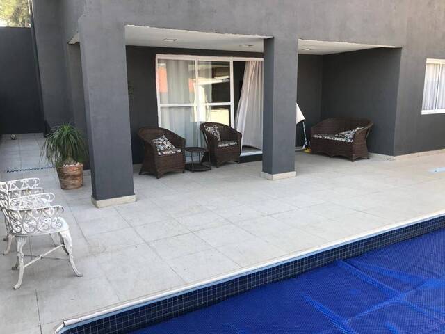 A área externa oferecendo uma piscina convidativa e uma churrasqueira para momentos de entretenimento memoráveis.