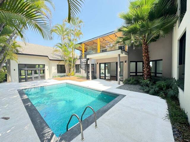 Linda casa com 5 suítes (2 localizadas no piso térreo e outras 3 no andar superior), ampla sala integrada com lareira e sala de jantar, uma grande varanda com área gourmet na parte superior com uma linda piscina