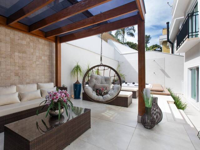 Casa à venda porteira fechada, em terreno de 300 m² com 324 m² de construção, totalmente mobiliada e com marcenaria recém-instalada. Possui três salas integradas (estar, TV e jantar), quatro suítes amplas, excelente iluminação natural com janelas grandes e vista para reserva permanente do condomínio. Conta ainda com garagem para quatro vagas, dois depósitos e área externa com hidromassagem aquecida para até sete pessoas. Localizada em rua tranquila, próxima ao clube e à academia, em condomínio completo com quadras de tênis e beach tênis, pista de skate e campo de futebol.